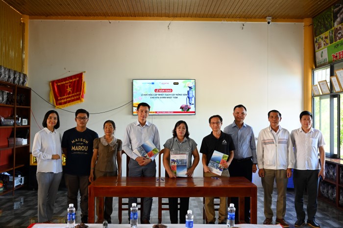 Đại diện Helvetas Việt Nam và các đơn vị phối hợp thực hiện bàn giao lò khí hóa cho HTX Nhất Tâm