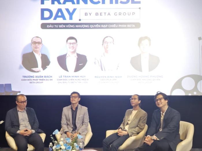 Tâm điểm của sự kiện là tọa đàm “Đầu tư bền vững cùng nhượng quyền rạp chiếu phim Beta” nơi các chuyên gia và nhà đầu tư cùng giải mã bí quyết thành công thực tế. Tại đây, anh Bình Nam, anh Minh Huy, anh Hoàng Phương và anh Xuân Bách đã cùng nhau phân tích những yếu tố then chốt giúp nhà đầu tư thành công với mô hình nhượng quyền rạp chiếu phim Beta từ ứng dụng số hóa để tối ưu tệp khách hàng, chiến lược vận hành hiệu quả đến giá trị gia tăng mà rạp chiếu phim mang lại.